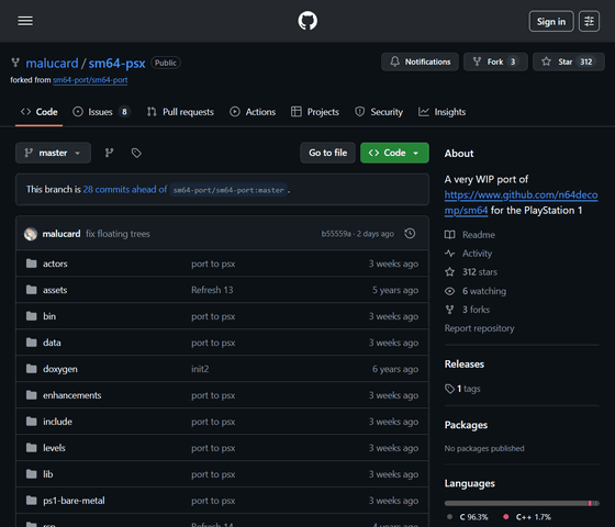 malucartさんはスーパーマリオ64を逆コンパイルして、NINTENDO 64ではなくPSX(DVDレコーダーとPlayStation 2のハイブリッドデバイス)でプレイできるようにした「Super Mario 64(DualShock Version)」をGitHub上で公開しています。