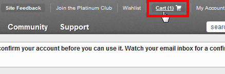 アカウントが認証されたので右上の「Cart(1)」をクリック