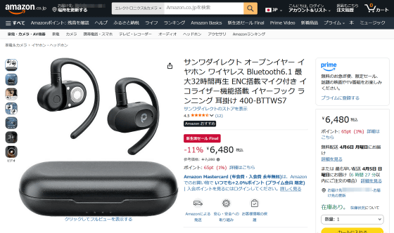 オープンイヤー型で耳をふさがずに音楽を聴くことができるサンワサプライ製Bluetoothワイヤレスイヤホン「400-BTTWS7」が2026年2月27日に登場しました。実物をGIGAZINE春のプレゼント大放出企画の景品として提供してもらえたので、実際に装着してみた感じやオープンイヤー型にありがちな音漏れがどうなっているのか確かめてみました。