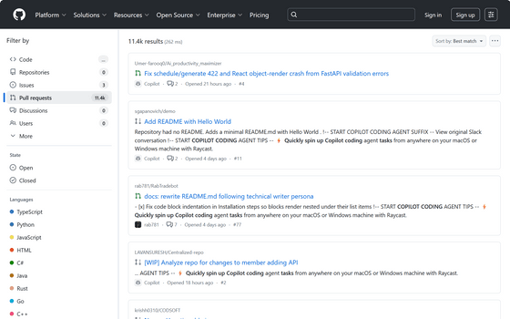 「"⚡ Quickly spin up copilot coding tasks"」というワードで検索すると、Copilotが書いた「Raycastを使用すると、macOSまたはWindowsマシン上のどこからでもCopilotコーディングエージェントタスクをすばやく起動できます」という文章が山ほど表示されるという指摘もあります。