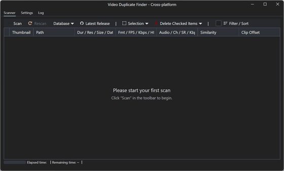 セットアップが完了しVideo Duplicate Finderのメイン画面が表示されます。