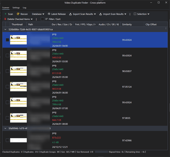 無料で重複した動画ファイル・画像ファイルを類似性に基づいて検出する「Video Duplicate Finder」、他の重複ファイル検索ツールと異なり解像度やフレームレート違い・透かしの入った重複ファイルも検出可能