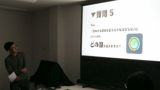 So the fifth question. "If you have to change your nationality from Japan, which country would you choose?" It is also a questionable question. What criteria do you choose?