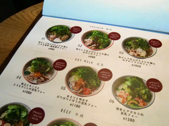 Each menu has check items "BEAUTY", "HEALTHY", "RELAX", so that you can choose according to your mood.
