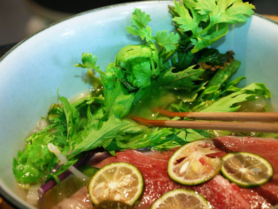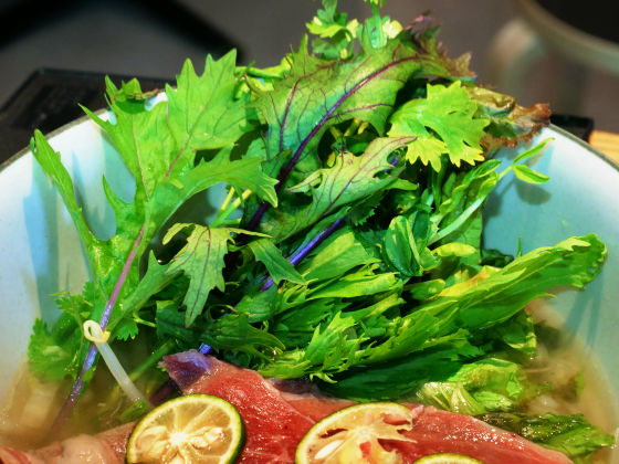 Kuroge Wagyu bee was provided in the condition of rare or nearly raw. Since the Odashi is Atsuatu, the meat is gradually overheated by the heat of the soup stock.