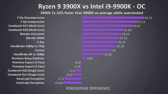 YouTube channel ' Jarrod's Tech ', which deals with PC hardware, has released a movie comparing Ryzen 9 3900X of such 3rd generation Ryzen series with Intel Core i9-9900K of 8 cores and 16 threads in the same price range. .