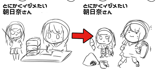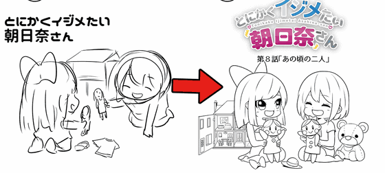 On the first page of each episode of 'Anyway, I want to bully Asahina-san', we introduced a two-frame manga and inserted a 'frontispiece' in half the size of the page. Since the frontispiece here is also used as an image for announcement, it is devised to convey the charm of the work, such as what kind of work and what kind of episode, so I will explain the transition how it is created. increase.