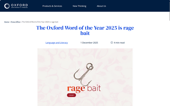Oxford University's Word of the Year for 2025 has been chosen as 'rage bait.'