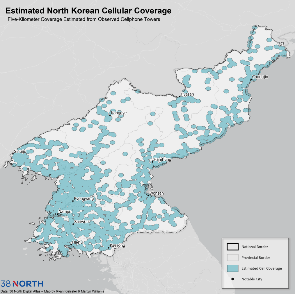 While the state of North Korea's internet is unclear from the outside, all ministries are reportedly connected to the domestic intranet 'Kwangmyeong' via fiber optics. 38 North, a news website about North Korea, has published a map plotting the locations of North Korea's cell phone towers, which also reveals a row of cell phone towers along the Sea of Japan side. This row of towers on the Sea of Japan side coincides with the presence of a railway line, suggesting that cables are laid along railway tracks and major roads throughout the country, much like the railway bridge across the Tumen River.