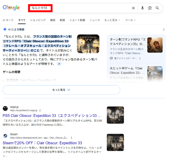 By the way, since Clair Obscur: Expedition 33 was a difficult title for Japanese people to remember, it is also commonly referred to as 'Nantoga 33.' Ifyou search for the phrase 'Nantoga 33' on Google , Clair Obscur: Expedition 33 will definitely come up as a hit.