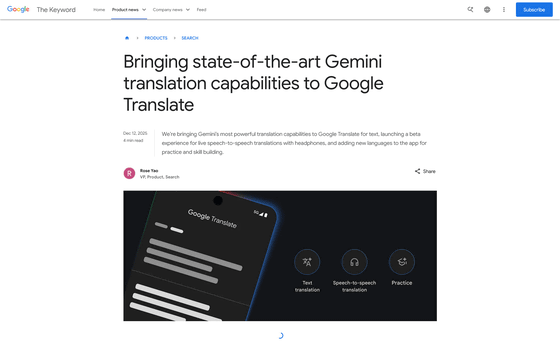 It has been announced that Google Translate will introduce cutting-edge text translation quality developed by Gemini. In addition, a beta version of a feature that allows users to listen to real-time translations using headphones will also be launched.