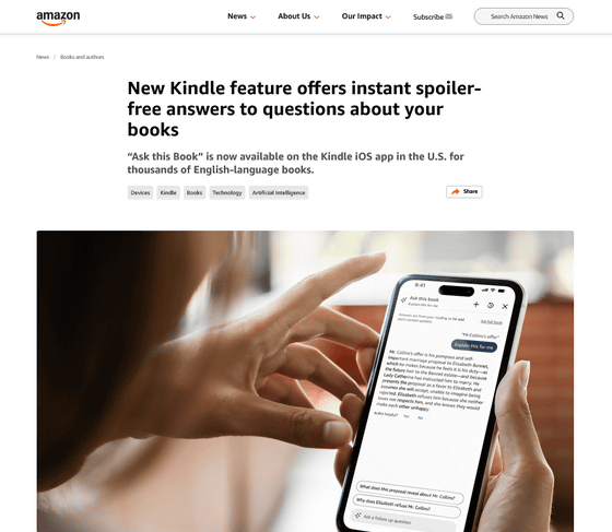 On December 11, 2025, Amazon announced a new AI-powered feature for its Kindle called 'Ask this Book.' According to Amazon, Ask this Book acts as an 'expert reading assistant' that quickly answers questions about plot details, character relationships, thematic elements, and more, without interrupting your reading flow. Answers are provided in context based on your current reading location to avoid spoilers.