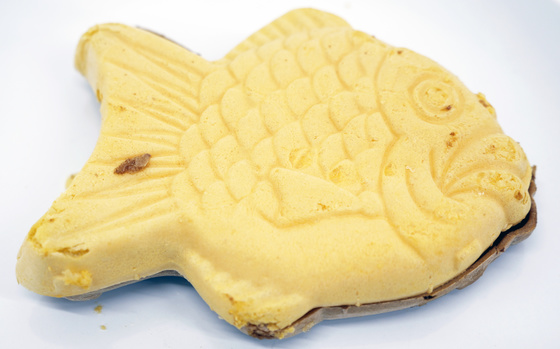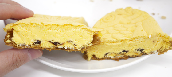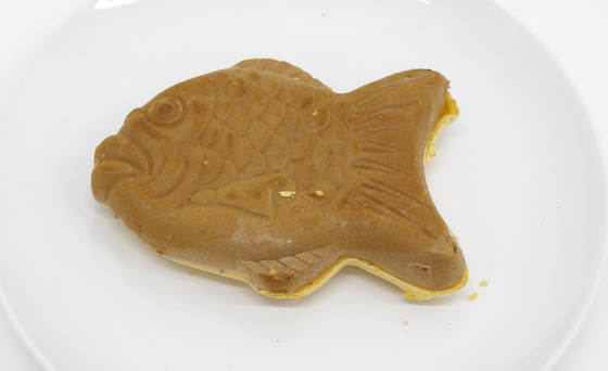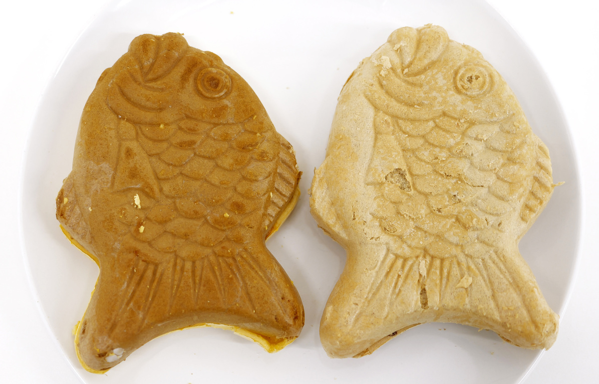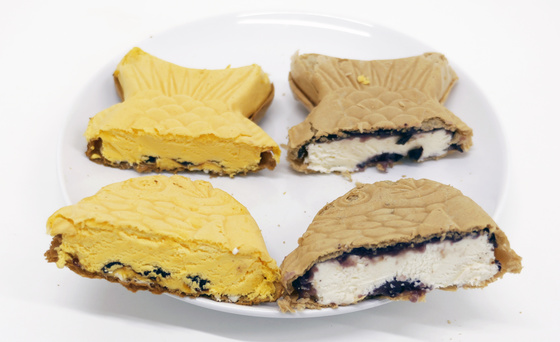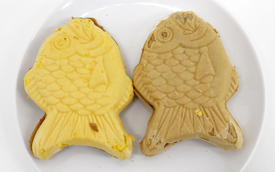 On the other side, you can see that the Taiyaki Ice Pudding (left) has the yellow color of the pudding.