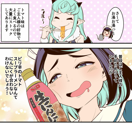 A garlic-loving maid hides from a vampire and indulges in 'garlic gourmet' in the newly drawn manga 'Master, I Smell Like Garlic!', published in an article for GSC members