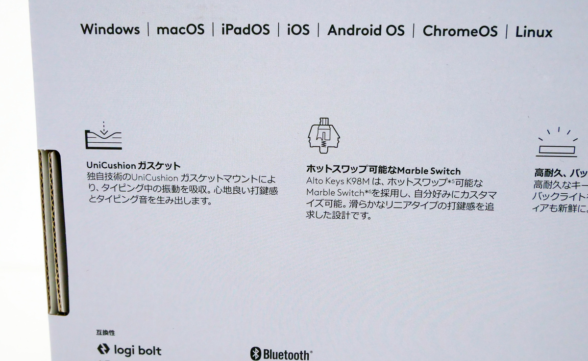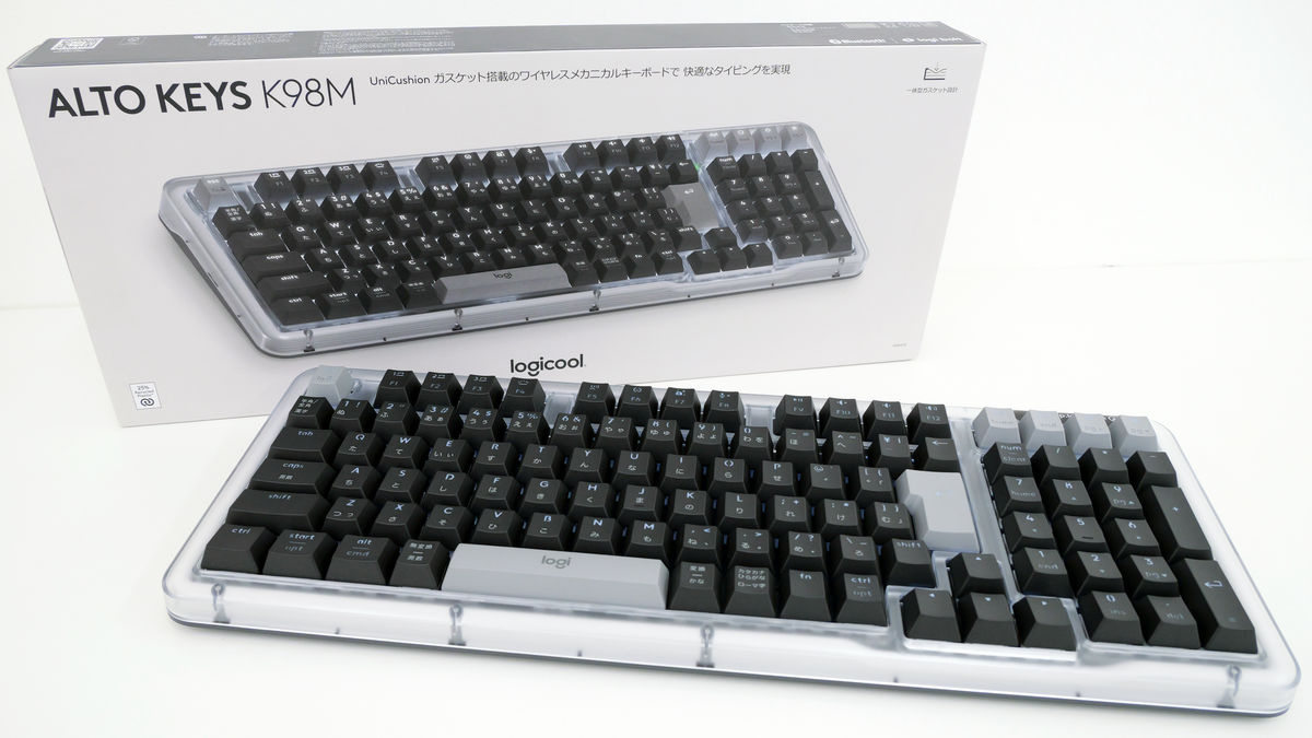 Logitech announced the Alto Keys K98M , the company's first Japanese-layout mechanical keyboard with a gasket mount that absorbs keystroke sounds, on February 2, 2026. I was able to borrow the K98M ahead of its release, so I took a close look at the appearance of the thick gasket mount and experienced the actual keystroke feel.