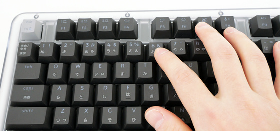 The K98M is a mechanical keyboard, and its 'actuation point,' or how many millimeters you need to press down before it responds to your input, is precisely controlled. When you press down on the keys, you can feel the appropriate typing feel, while also noticing that the bottoming out sensation that's typical of mechanical keyboards is absorbed.