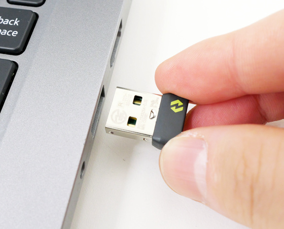 For even simpler connection, use the included LogiBolt USB receiver. Simply insert the LogiBolt USB receiver into your PC's USB port.