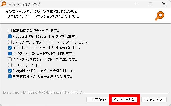 Click 'Install'. You can change the options to your liking, but since you need to start Everything to display the folder size, we recommend leaving 'Start Everything at system startup' checked.