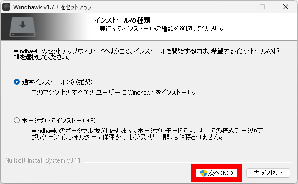 When the screen for selecting the installation type appears, leave the default setting of 'Normal Installation' and click 'Next'.