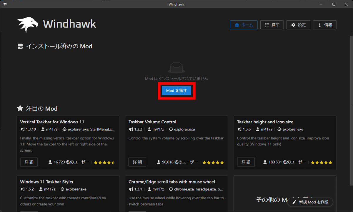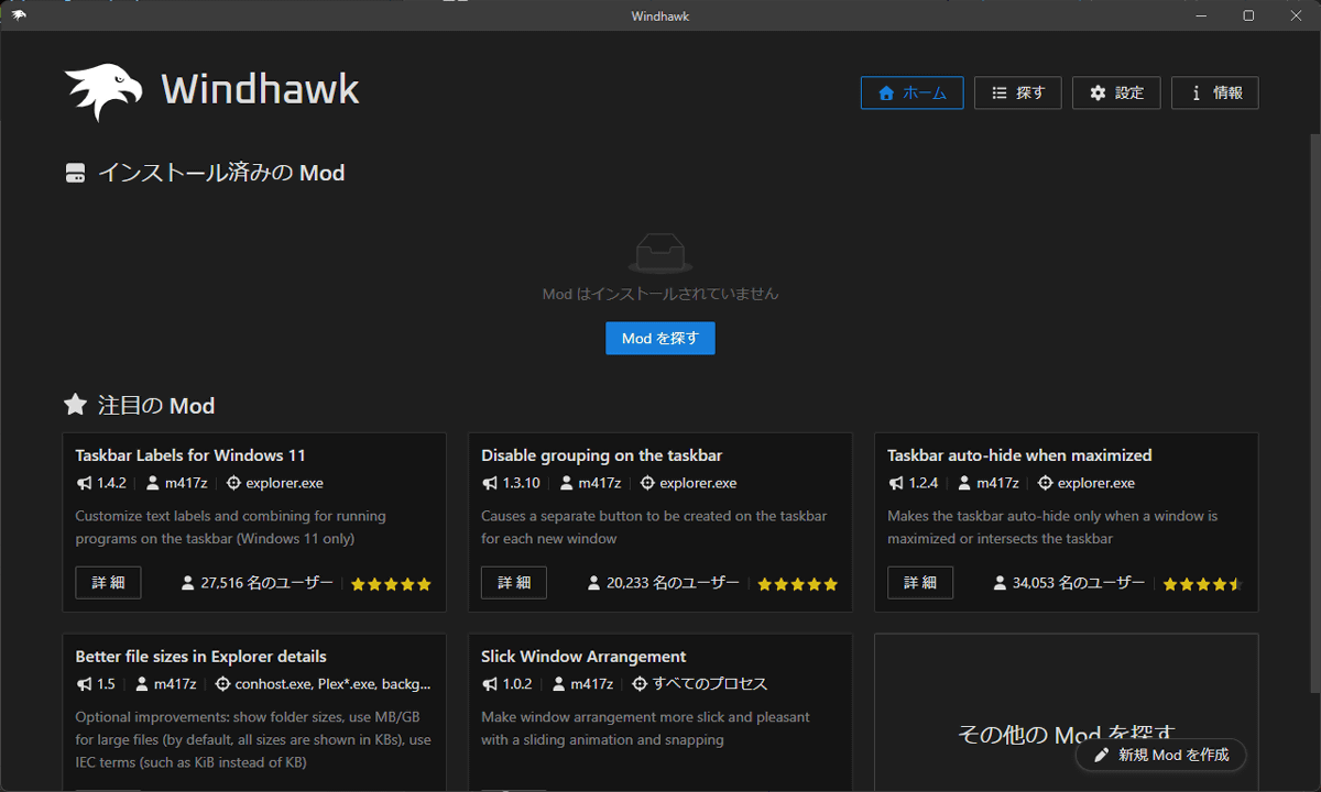 In addition to the mods used in this article, Windhawk allows you to install a wide variety of mods, such as a mod that lets you change the volume by simply rotating the mouse wheel on the taskbar, a mod that moves the Windows 11 taskbar to the top of the screen, a mod that displays the Windows 11 taskbar vertically on the right or left side of the screen, and a mod that makes window corners right-angled . A list of mods can be found at the link below. However, please be sure to check the source code as there is a possibility that malicious mods may exist.