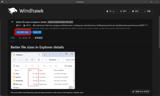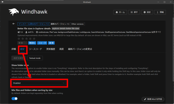 While the detailed view in Windows Explorer can display file size and creation date and time, it cannot display folder size. I learned that by combining the Windows custom app 'Windhawk' and the fast file search app 'Everything,' it is possible to display folder size, so I have compiled the installation instructions and setup instructions for each app.
