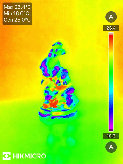 Below is a movie taken with Mini2Plus V2 of hot water being poured into a teacup. You can clearly see how the temperature of the hot water poured into the teacup changes as it swirls.