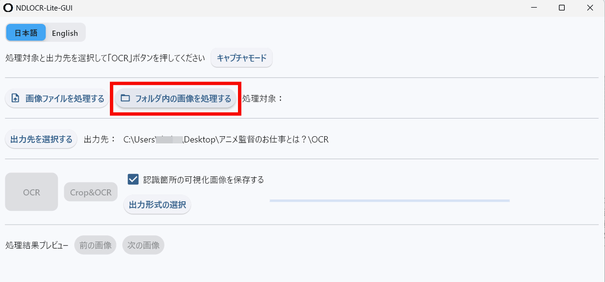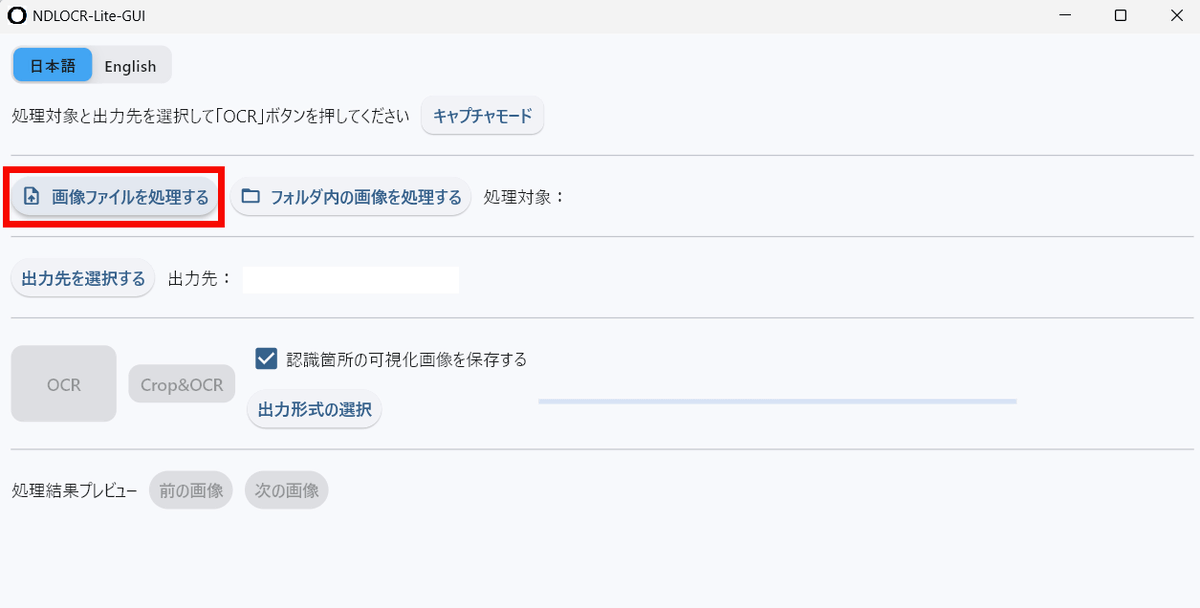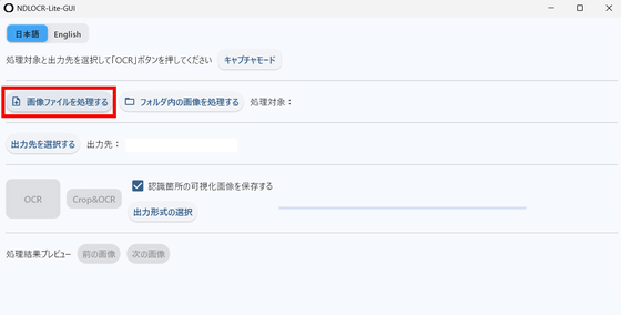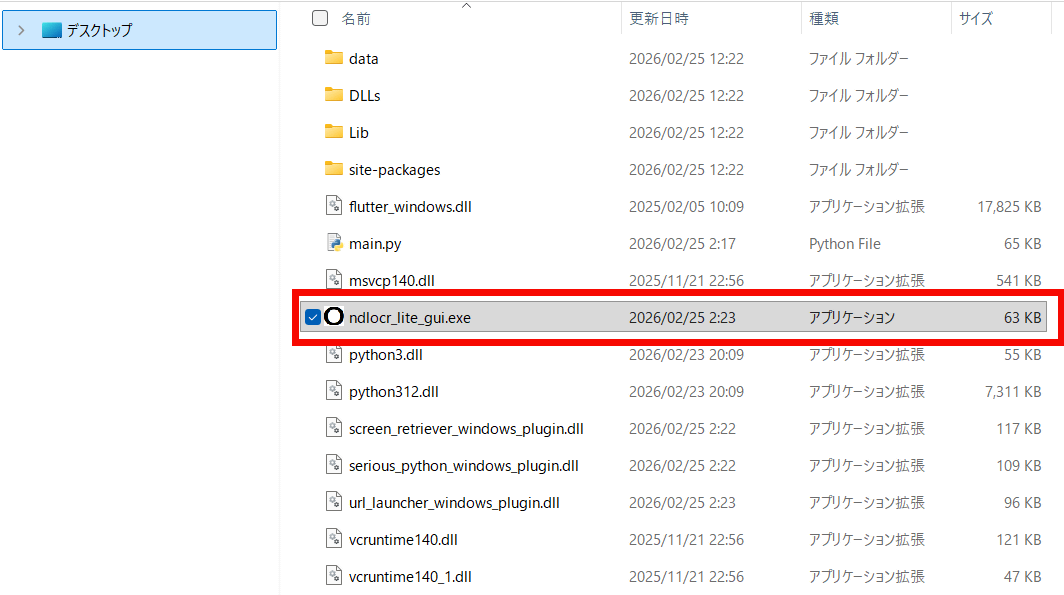 After extracting the downloaded ZIP file, launch 'ndlocr_lite_gui.exe'.