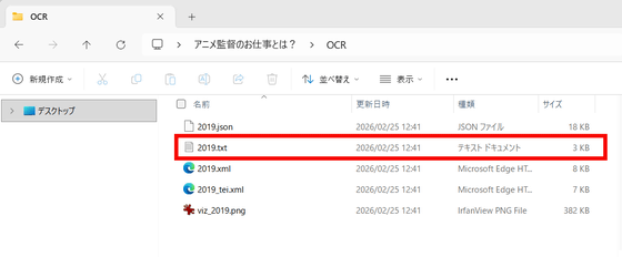 The output folder contained files in JSON, TXT, XML, TEI, and a preview image. Let's open the TXT file.