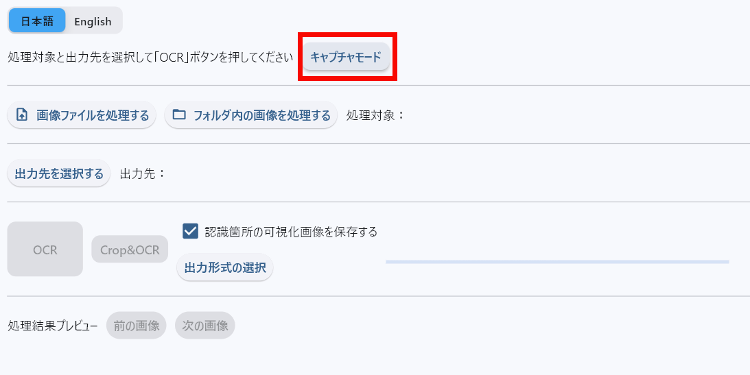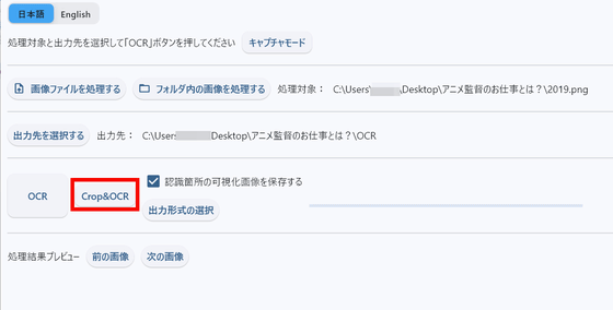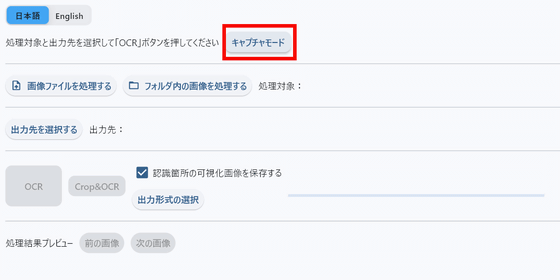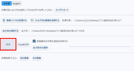 After selecting the image and output destination, click 'OCR' to start text extraction.