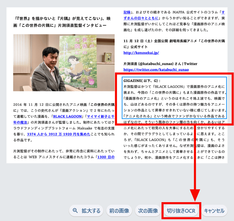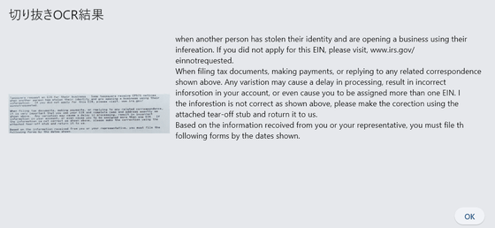 The text in the selected area has been extracted. Note that the OCR data is not saved as a text file.