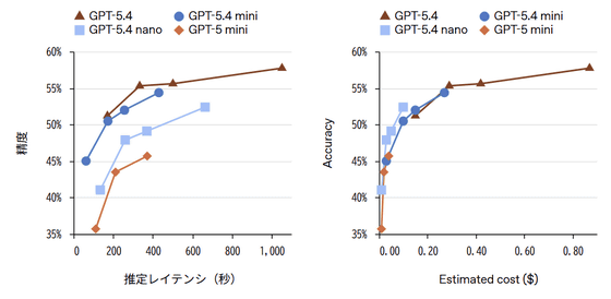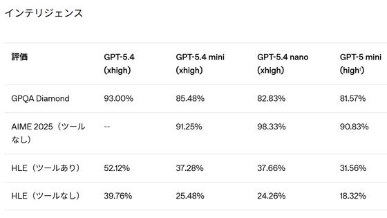 GPT-5.4 nano is available via API only, with a fee of $0.20 (approximately 32 yen) per 1 million input tokens and $1.25 (approximately 198 yen) per 1 million output tokens.