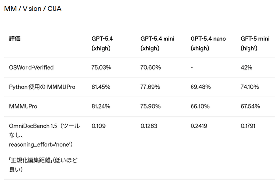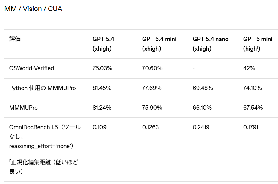 In voice understanding, image recognition, and computer operation, the GPT-5.4 mini shows improved benchmark scores compared to the GPT-5 mini. The GPT-5.4 nano is slightly inferior to the GPT-5 mini.
