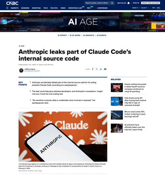 https://www.cnbc.com/2026/03/31/anthropic-leak-claude-code-internal-source.html