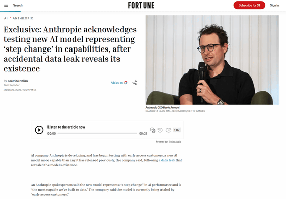 Exclusive: Anthropic 'Mythos' AI model representing 'step change' in power revealed in data leak | Fortune