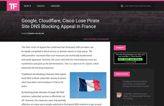 Google, Cloudflare, Cisco Lose Pirate Site DNS Blocking Appeal in France * TorrentFreak