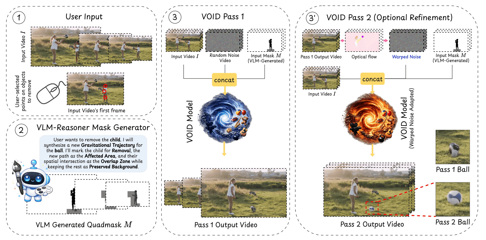Netflix and a research team from Sofia University in Bulgaria have announced a video editing framework called ' Video Object and Interaction Deletion (VOID) .' While traditional deletion methods are good at filling in backgrounds and correcting appearances, they often produce unnatural results in scenes involving complex physical interactions between objects. VOID was designed to solve these problems.