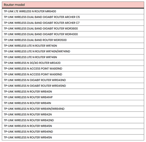 The following are the TP-Link router models that APT28 exploited. The NCSC, which compiled this