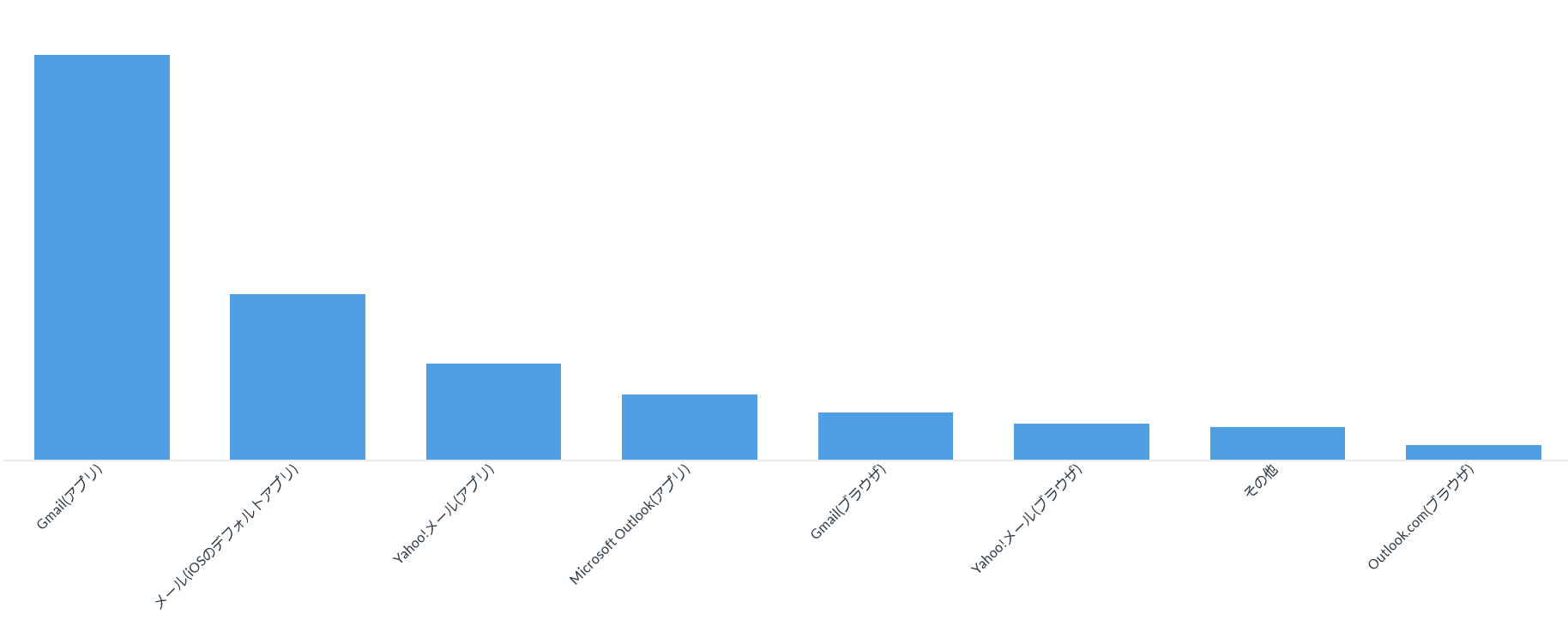 Gmail services are also strong on smartphones, with the Gmail app taking the top spot at 45.86%. However, unlike on PCs, the second-place app was Mail (the default iOS app). It seems that a certain number of people continue to use the apps that come pre-installed on their smartphones due to the ease of adding accounts and familiarity with the OS.