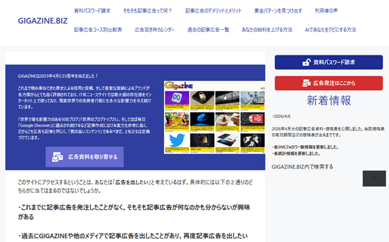GIGAZINE.BIZ | Information on advertising on the IT news site GIGAZINE.