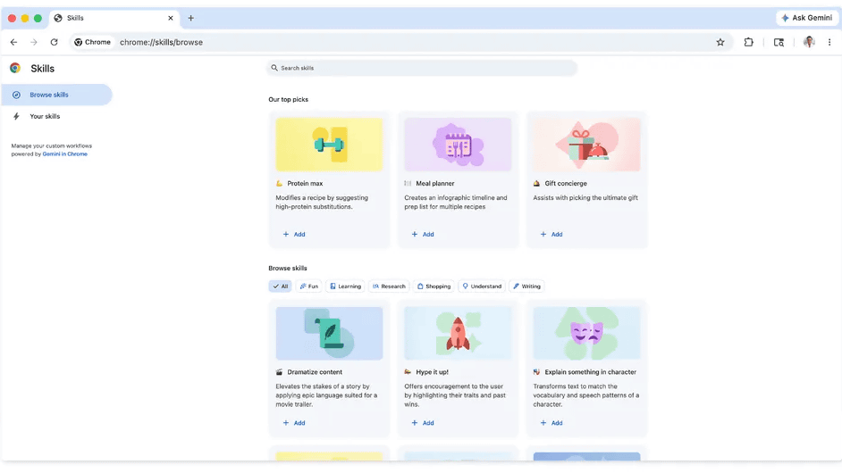Google introduces 'skills' in Chrome to make Gemini prompts instantly reusable - Ars Technica