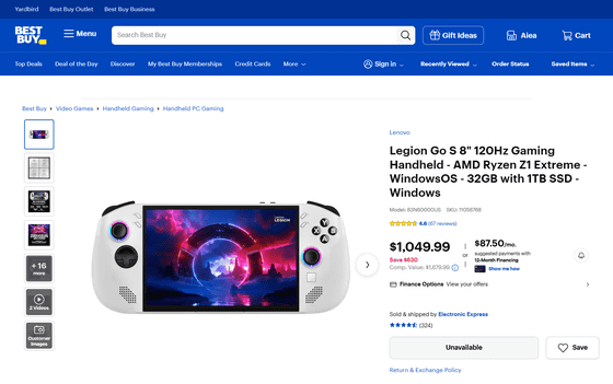 The Legion Go S was selling for $829.99 (approximately 132,000 yen) until around summer 2025 , but it has now been revealed that the top-of-the-line model with AMD Ryzen Z1 Extreme and SteamOS has skyrocketed to about double that price, $1579.99 (approximately 251,000 yen), at Best Buy.