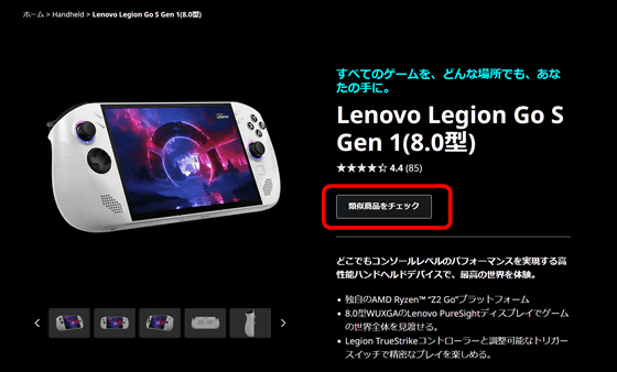 Furthermore, on the official Lenovo website in Japan, the Legion Go S sales page had a 'Check similar products' button where the purchase button should have been, and the official store did not carry the Legion Go S.