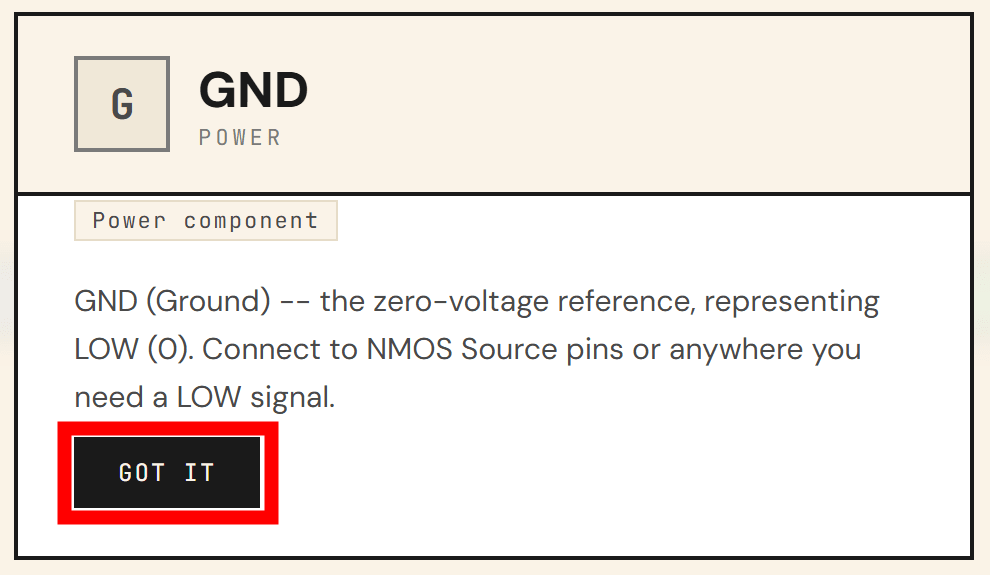 逆に「GND」は常に「0」になると考えればOKです。「GOT IT」をクリックします。
