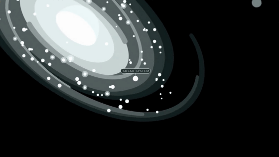 太陽系からものすごいスピードで遠ざかっていくと、やがて太陽系を含む銀河系(天の川銀河)の姿が見えてきます。