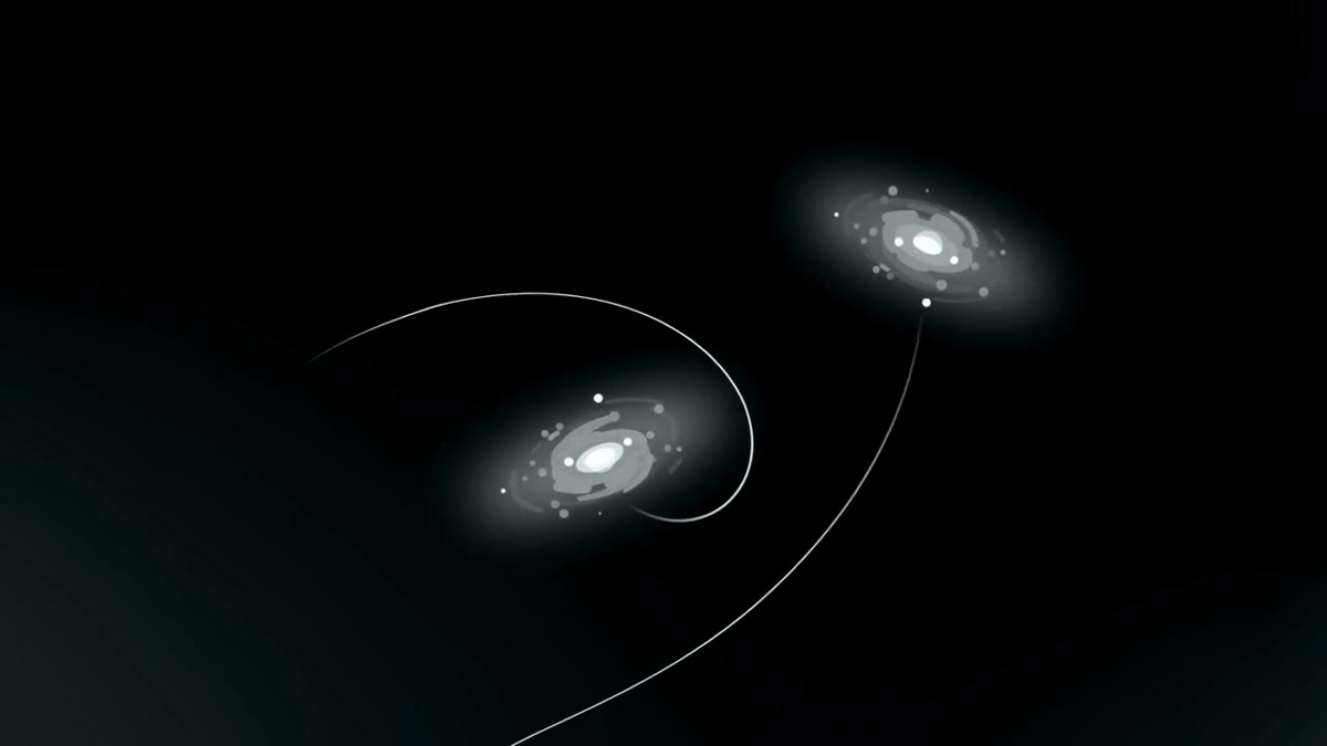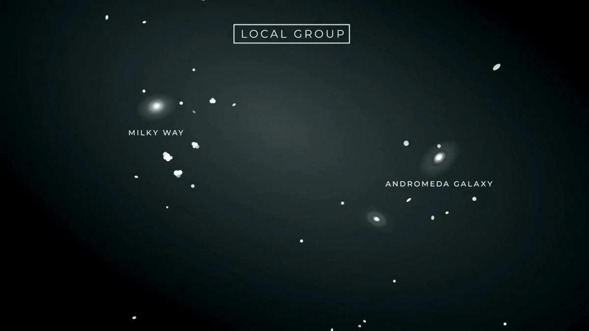 これらの銀河は広い規模で見ると、重力やガスの流れ、目に見えない暗黒物質(ダークマター)によって織り合わされた、50を超える銀河からなる局所的なグループとして観測されます。この局所的なグループの幅は約1000万光年ほどだとのこと。