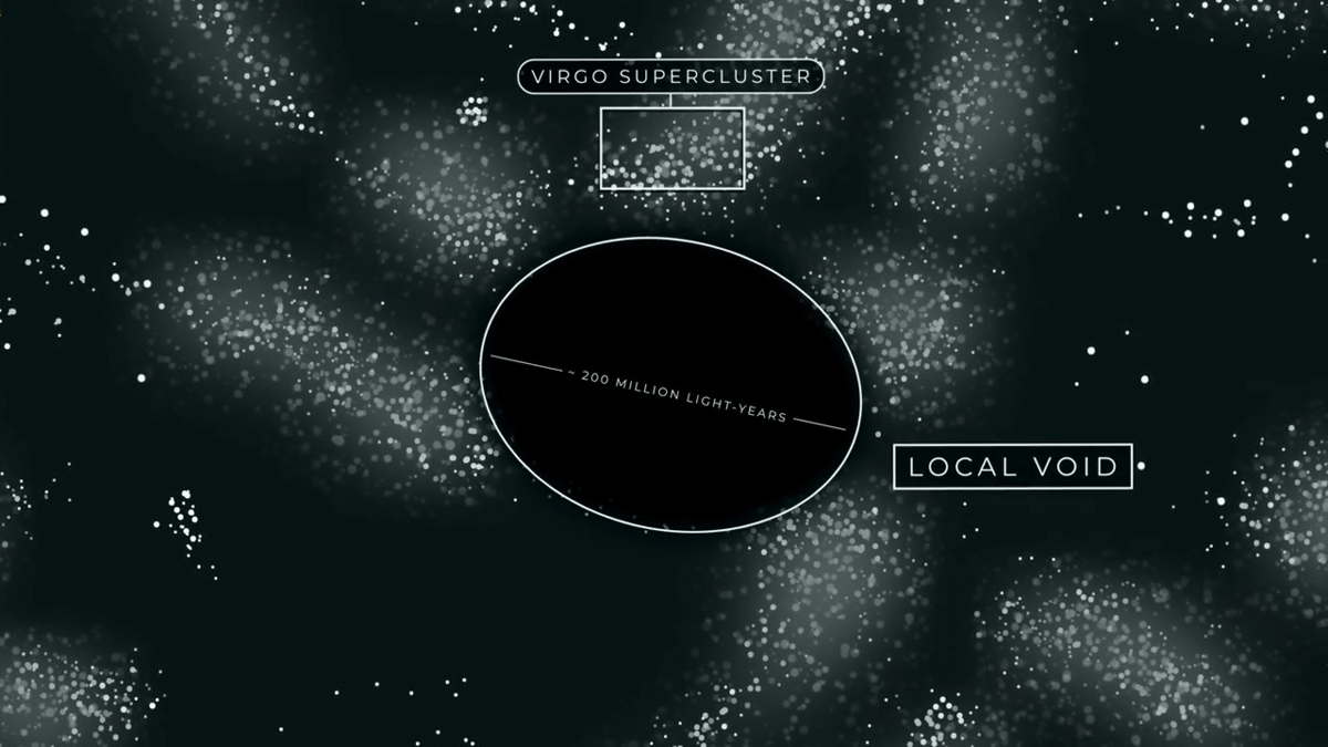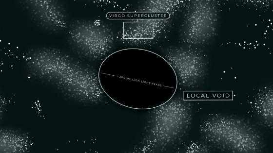 ところが、そのすぐ横には直径2億光年にわたって広がるローカル・ボイドというボイドが存在しています。