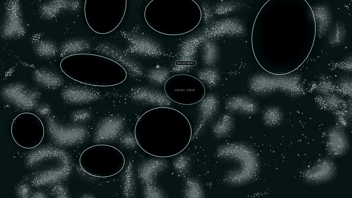 宇宙の広い範囲はボイドという空虚な空間で占められています。そこは数億光年にわたる広大な空間で、光を発する天体がほとんど存在していません。