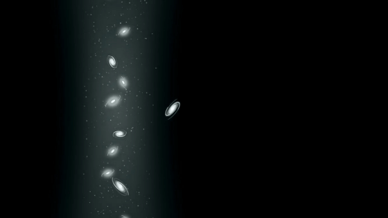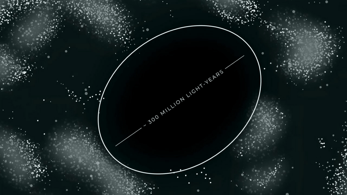 巨大なボイドの周辺には組織化された銀河が密集しており、それぞれが時速数百万kmで宇宙空間を移動しながら、より大きな銀河団の中心に向かって移動しているとのこと。