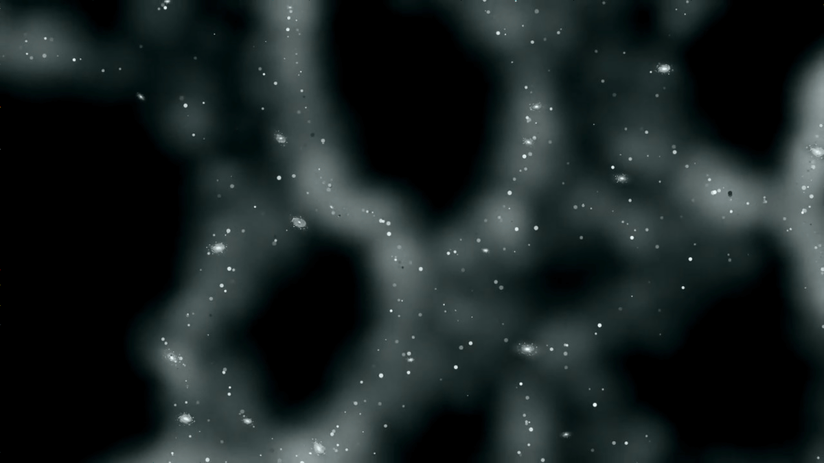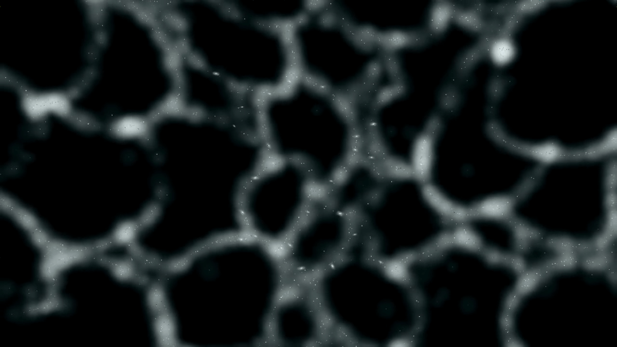 ボイドが大きくなるにつれて宇宙の大規模構造が壊れ、銀河フィラメントがゆっくりと引き裂かれます。
