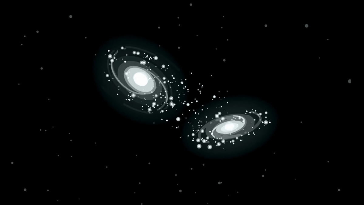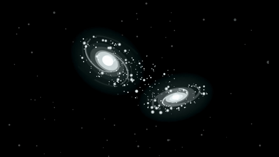 密集した銀河は非常に活発で、近隣の銀河の重力に引っ張られて衝突し、時に合体します。